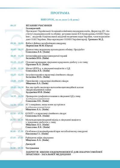 Программа "Школа ендокринології для лікарів загальної практики – сімейної медицини"